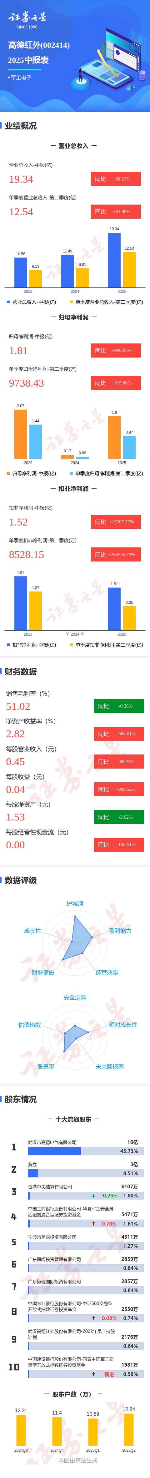 图解高德红外中报: 第二季度单季净利润同比增长915.86%